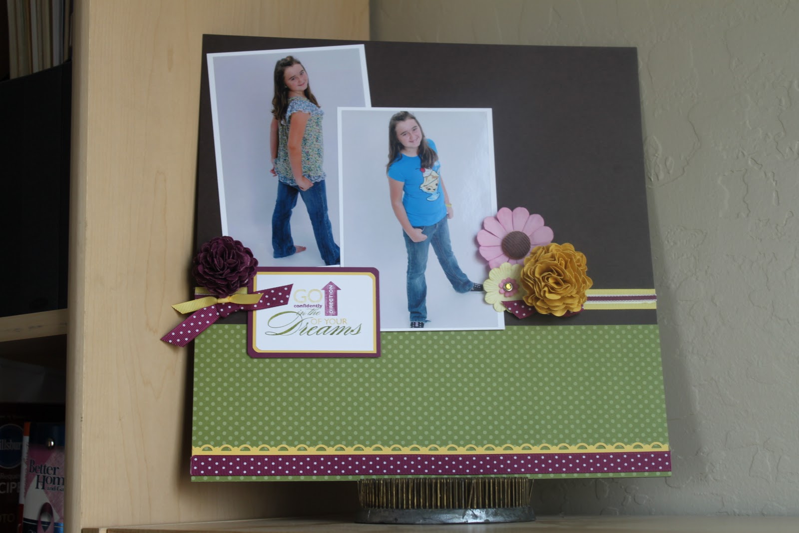 April 30th from 1 to 3 pm at my house. Cost is $12 and all supplies will be provided, feel free to bring your own paper trimmer, scissors and adhesive if you wish. For my pages, I used three 4x6 photos so you can bring your own photos if you wish, these pages do allow for the flexibility of different sizes. Please reserve your space no later than April 28th by phone, email, or clicking on the RSVP link here, space is limited.